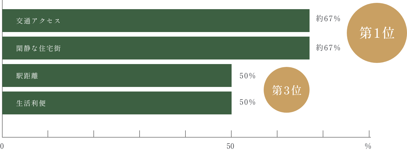 駅近の利便性に加え、大通りから奥まった閑静な住宅街に位置し、