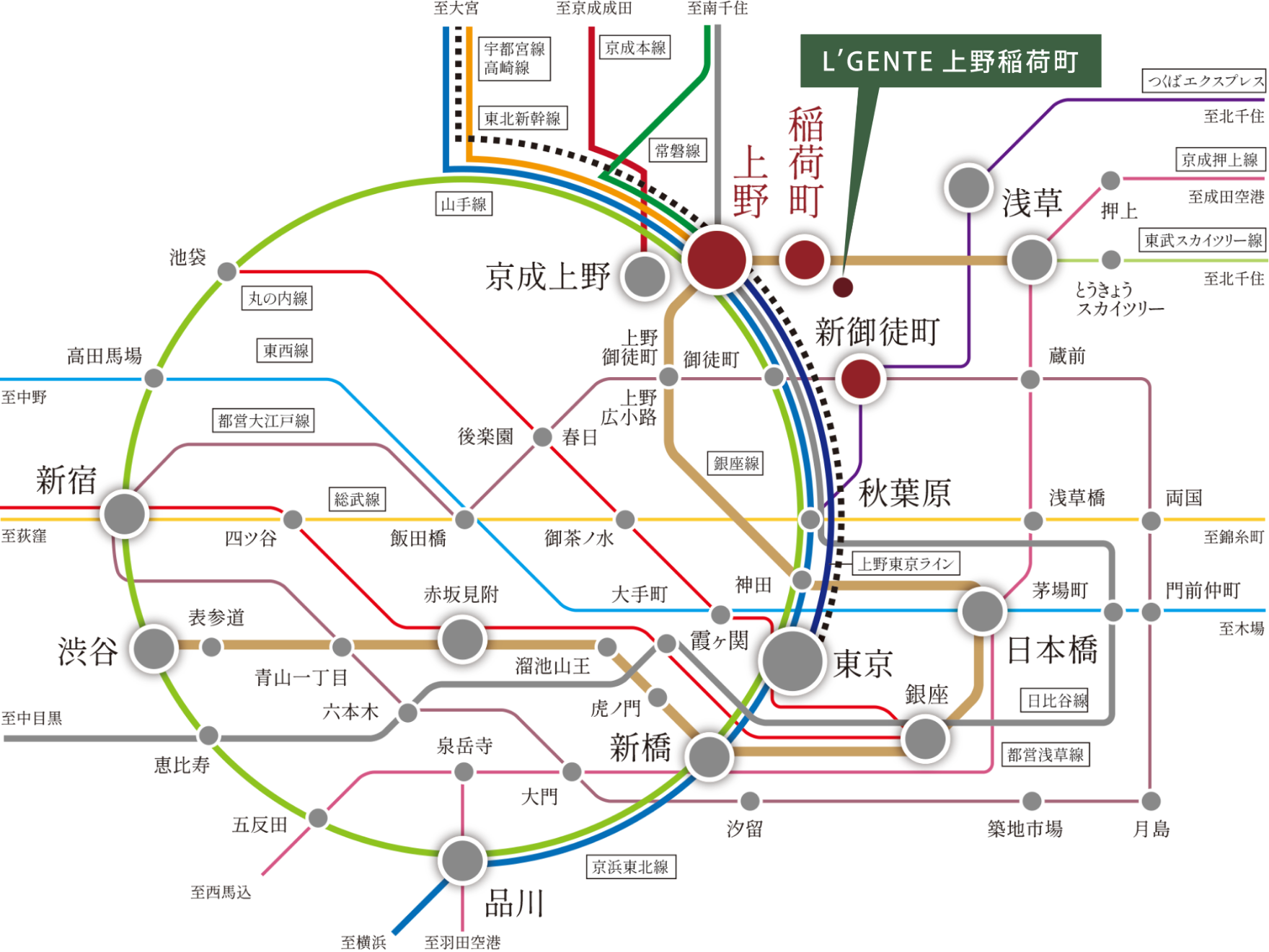 都心の主要駅「上野」駅から徒歩10分、銀座線「稲荷町」駅へは徒歩5分。